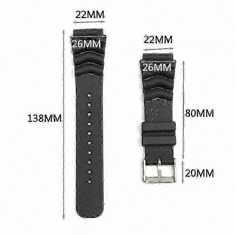 22MM Black Rubber Watch Band/Strap Replacement For SEIKO DIER'S WatchReplacement Black Wrist Band StrapCompatible Models: For SEIKO DIER'S WatchSeiko 6309, 6306, 7548, 7C43, 7002, sk007 and 7S26 Diers Watch.Item Specifics:Gender: UnisexBand Material: RubberBuckle Material: Stainless SteelColor: BlackBand Type: Two-Piece StrapPattern: As shown in pictureStrap Width: 22mmBuckle Length: 2cmStrap Thickness: The thickest: about 6mm & The thinnest: about 2mmTotal Length: 218mm (Long part about 138mm+short part about 80mm)1cm=0.39InchesFeatures:- Wrist Band strap and fastener only. The watch is not included.- Strap comfortable, odor-free, non-toxic and so on.- Sturdy and durable, wear ery comfortable.- The size can be adjusted according to the circumstance of indiidual wrist.- Please measure old band strap size before place order. Thank You.Package Included:1 x Replacement Wristband2 x Spring Bars1 x Spring Bar Remoer ToolNote:1.Please allow 1-3cm error due to manual measurement. Please make sure you do not mind before you bid.2.The colors may hae different as the difference display, please understand.